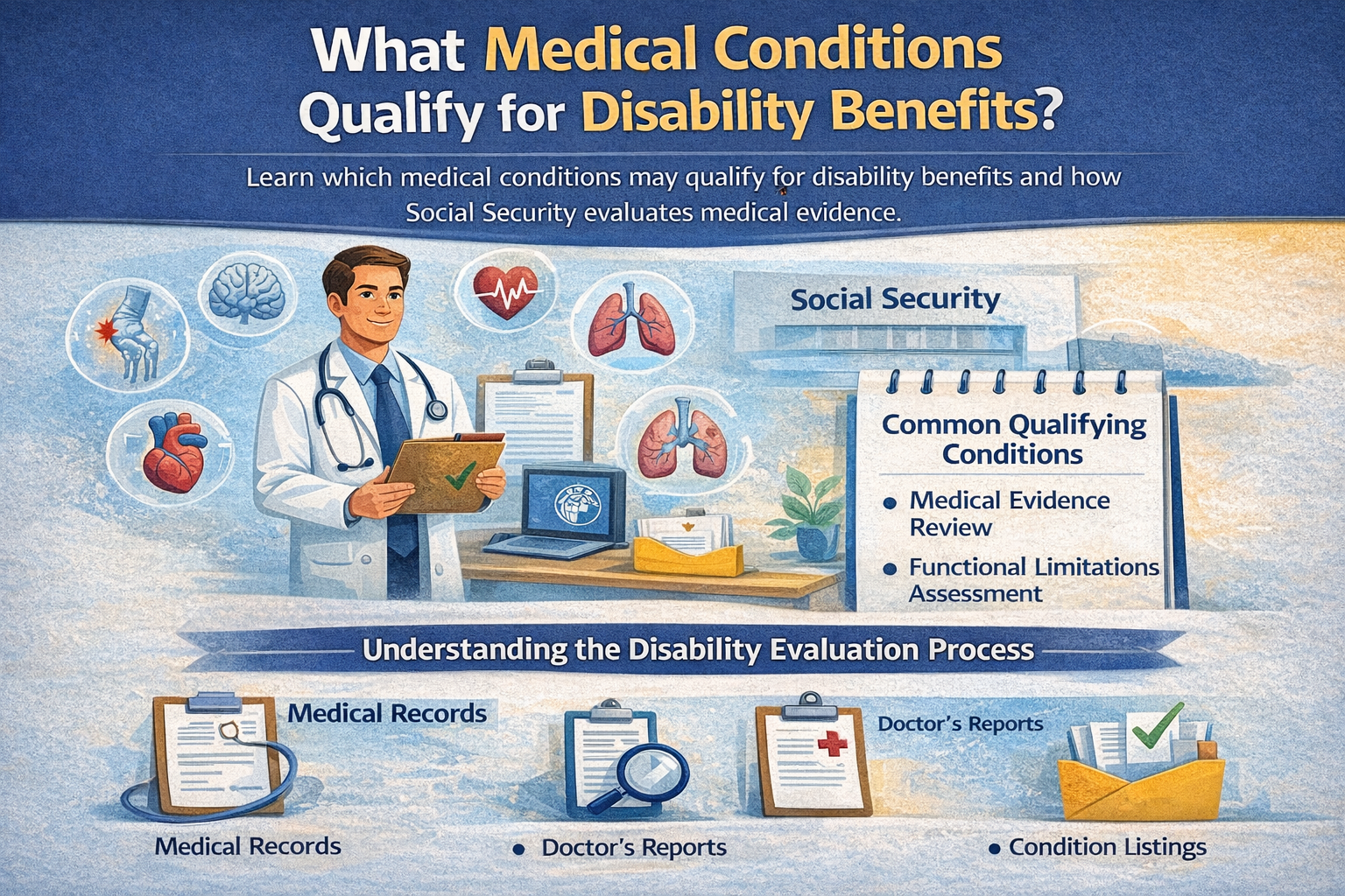 Medical conditions can qualify for disability benefits, but approval depends on more than the diagnosis itself.